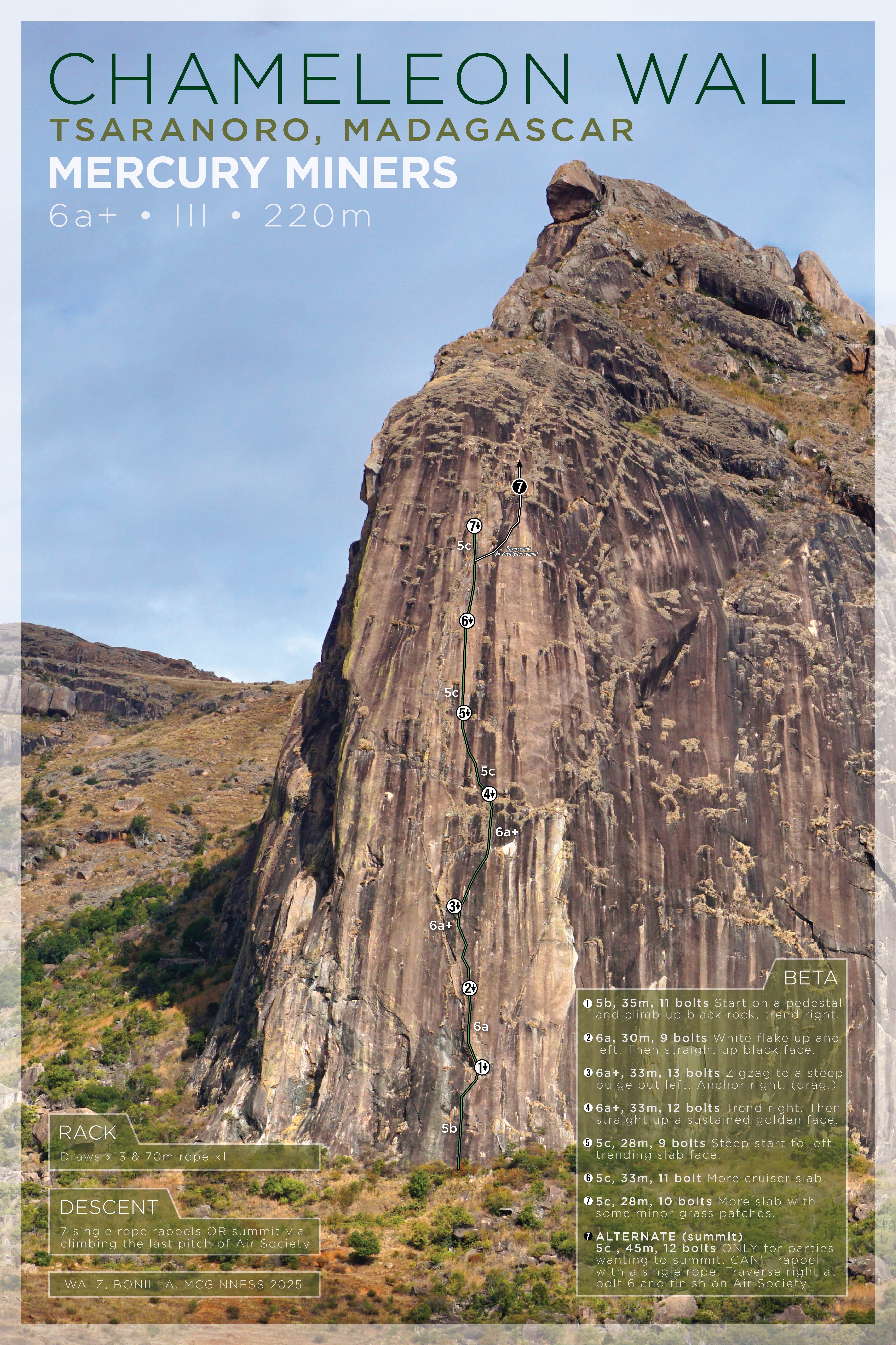 Opening our route, Mercury Miners, was a pure pleasure as the granite slabs were full of great features and easy climbing. We bolted the route in a style that makes it both approachable for new comers and useful to guides.